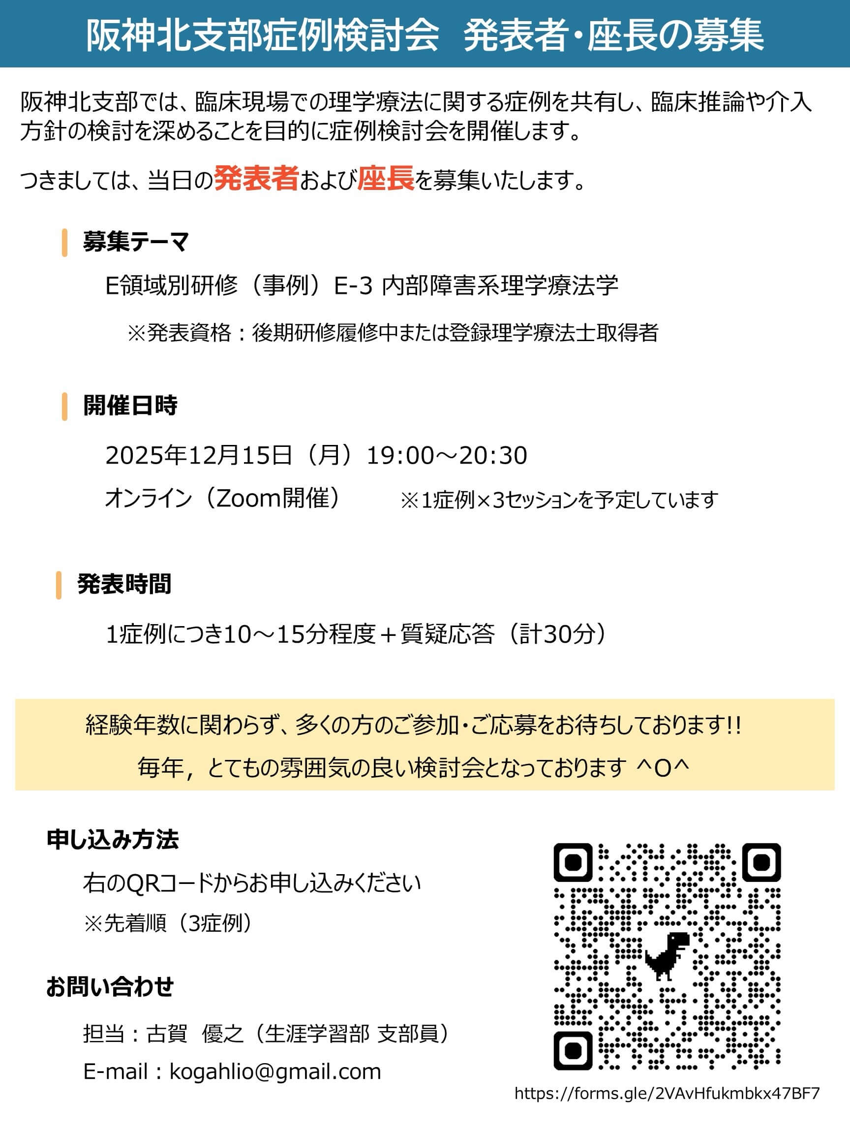 この度、下記のとおり症例検討会を開催する運びとなりました。それに伴い、発表者・座長を募集させていただきます。