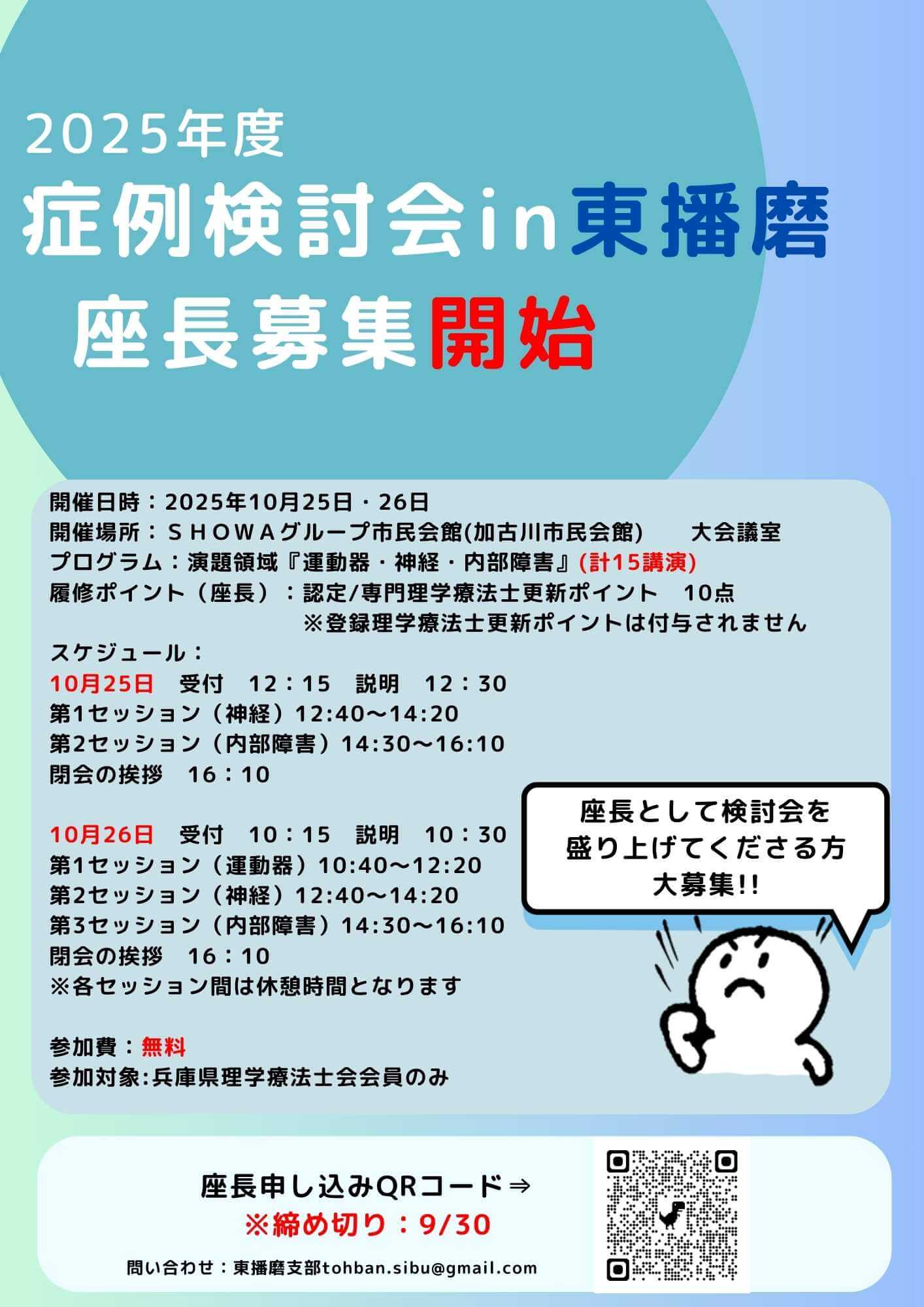 3. 令和7年度 東播磨支部症例検討会 座長募集のご案内