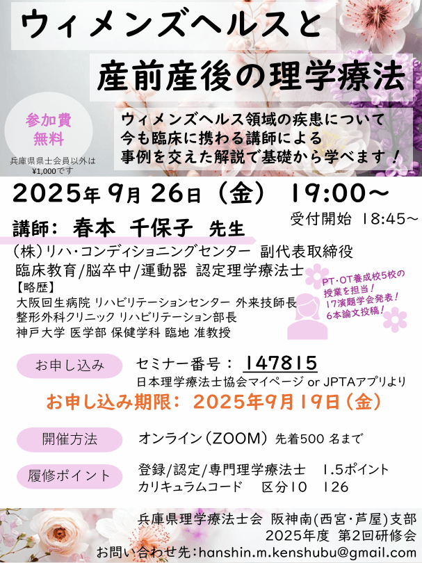 2025年度第2回 阪神南(西宮・芦屋)支部研修会の案内となります。