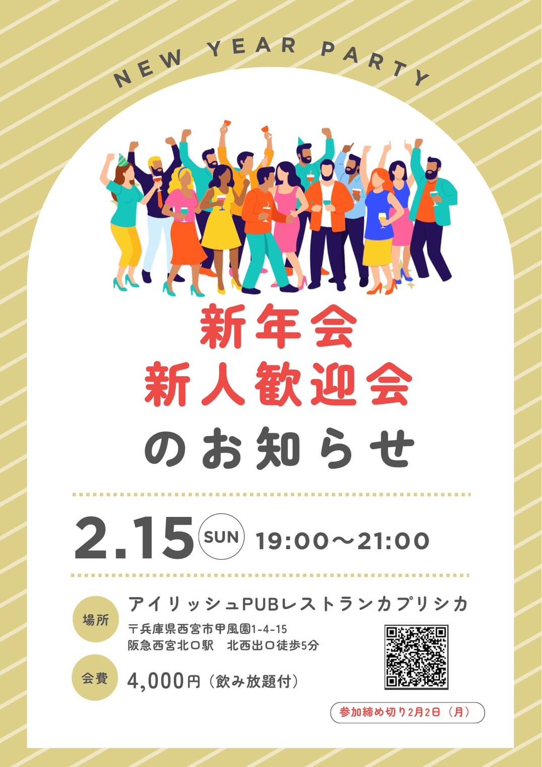 会場:アイリッシュPUBレストランカプリシカ(最寄り駅:阪急西宮北口駅 北西出口徒歩5分)