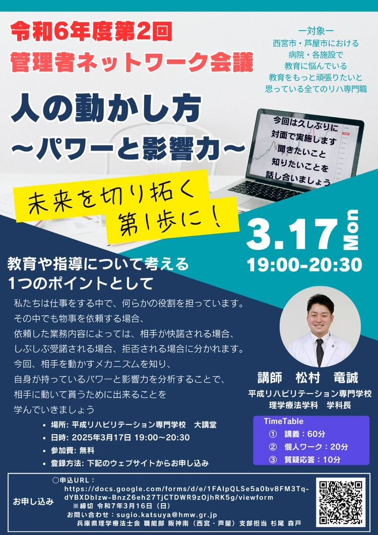 - 【阪神南(西宮・芦屋)支部】 第2回管理者ネットワーク会議 人の動かし方~パワーと影響力~2025年3月17日 7:00 PM