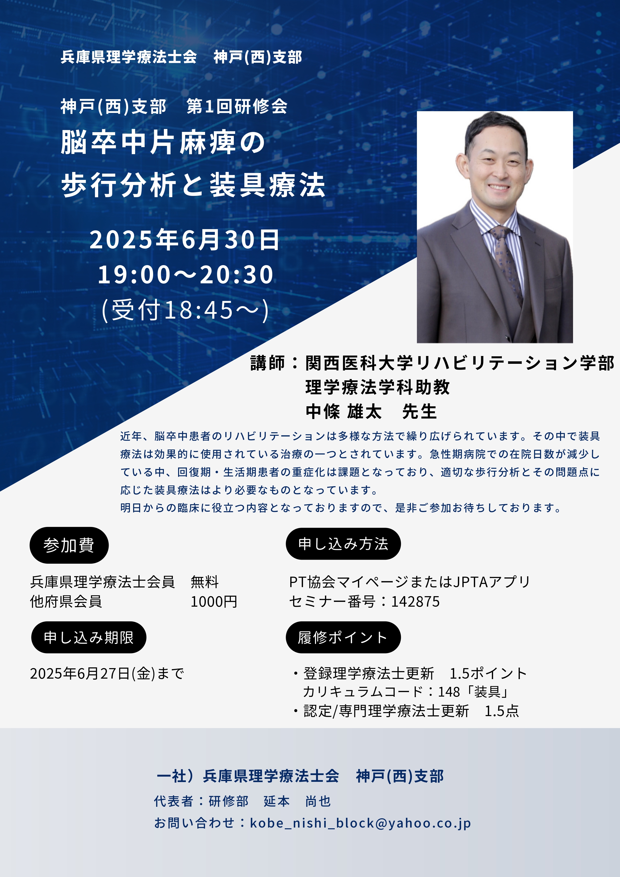 - 令和5年度兵庫県理学療法士会研修部第1回実技講習会2023年9月23日 7:30 PM